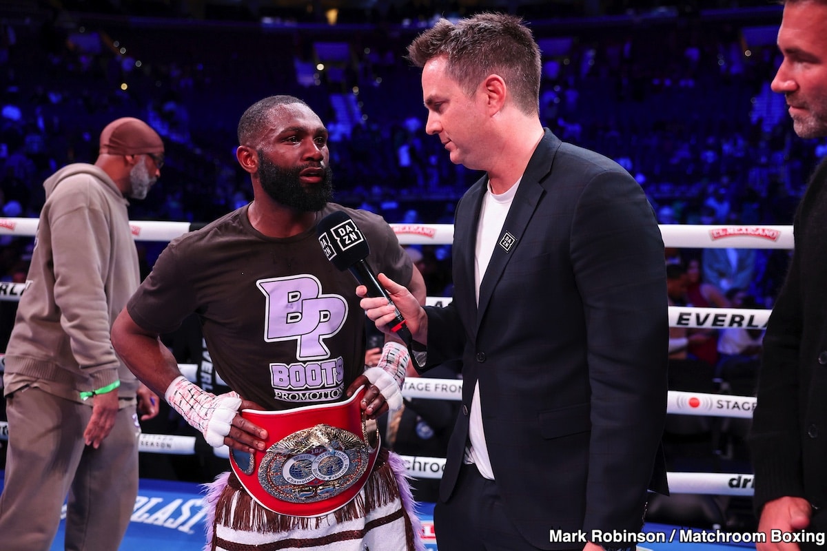 “إنه نوع من الدفء والهدوء. اعتقدت أنه قاتل جامين أورتيز والرجل الآخر (ساندور مارتن؟)، وبعد ذلك بدا جيدًا ضد جوش تايلور. لذا، من الصعب أن أقول ذلك مع رجل كهذا. أعتقد أنه سينسجم جيدًا مع (المدرب) إيدي رينوسو، فهو يتماشى نوعًا ما مع اللاعبين الذين لديهم نوع جسمه.