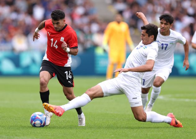 زيزو يتحدى عبد القادر خوسانوف خلال مباراة أوزبكستان ومصر. (تصوير روبرت سيانفلون / غيتي إيماجز)
