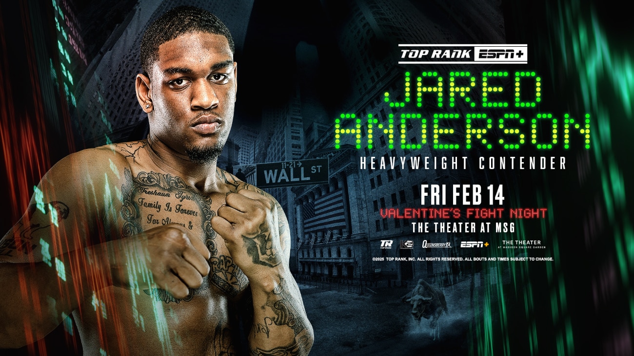 تم تدمير “الطفل الكبير” أندرسون، 25 عامًا، الذي تمت ترقيته بواسطة Top Rank، بواسطة مارتن باكولي في خمس جولات في أغسطس الماضي، وكان فظيعًا في تلك المعركة. هُزم جاريد تمامًا من القفزة، حيث سقط أرضًا في الجولة الأولى. كان من الممكن أن تنتهي المعركة في الجولة الأولى إذا حدثت الضربة القاضية في وقت مبكر، حيث بدا أندرسون ضائعًا عندما نهض.