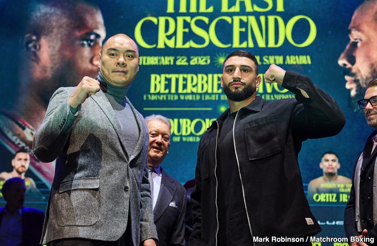 أعطى Zhilei Zhang هدية مفاجئة لأجيت كابايل خلال مؤتمره الصحفي قبل المواجهة المؤقتة على لقب WBC للوزن الثقيل الشهر المقبل في 22 فبراير في الرياض.