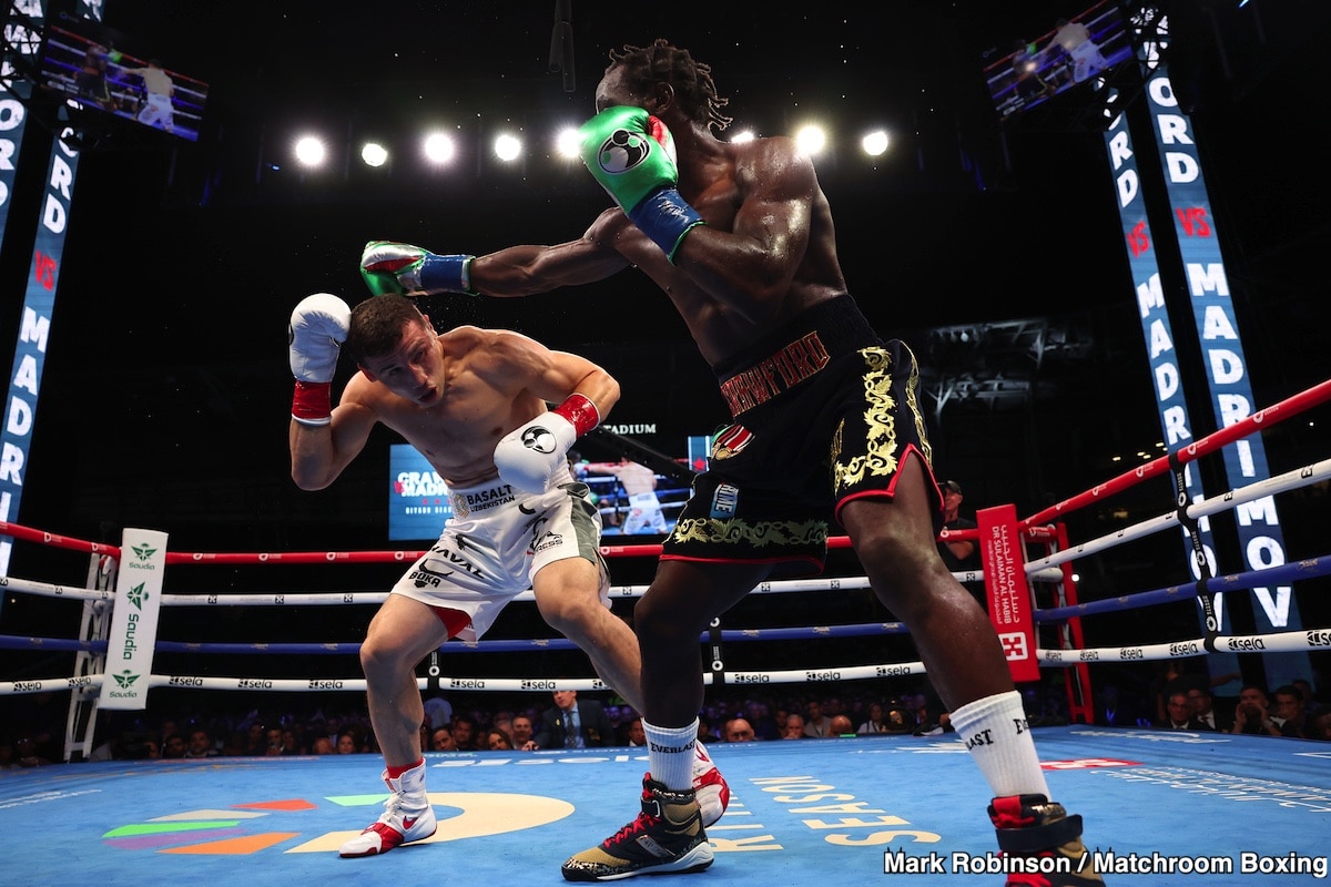 على الورق ، هذا عدم توافق كامل. كروفورد لم يقاتل أبدا في 168. سوف يخرج من فصل واحد ، ويبدو أنه لا يثبت في ظهوره الأول. ارتفع إلى 154 من 147 في معركته الأخيرة في 3 أغسطس ضد إسرائيل مدريدوف.