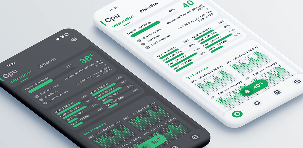 قسّم الشاشة إلى صفائف مختلفة ؛ يقوم التطبيق بإنشاء جدول يعالج المعلومات المحددة لكل عنصر مثل معلومات وحدة المعالجة المركزية ، والمعلومات المعروضة على شاشة الجهاز. بالنسبة للمحتوى الجهازي ، قمنا بتخصيصه ويمكنك تغريد بعض الإعدادات فوقه. يتم تلخيص الأجهزة ما هو المحتوى اللازم للمشاركة. ليس من الصعب للغاية اختيار موضوع تريده. توفر مجموعات مختلفة من الموضوعات المزيد من التصميم للمستخدمين الذين يذكرون.